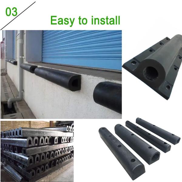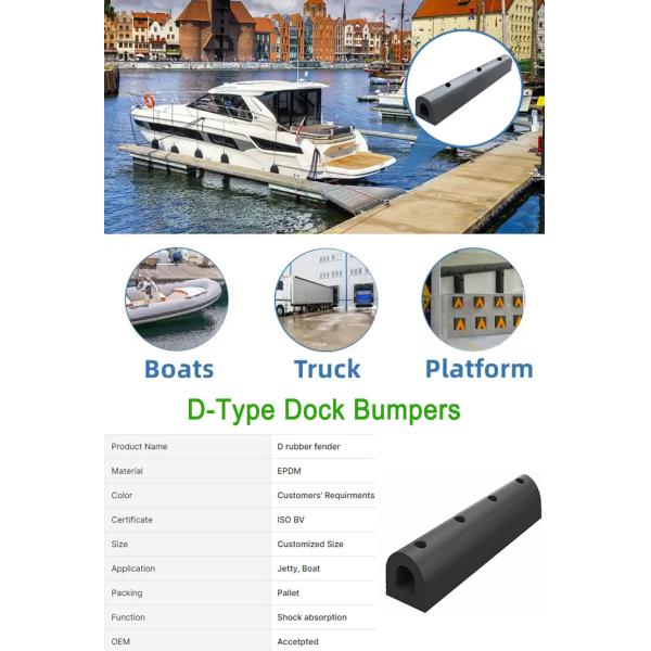 D-shaped rubber dock shock pads have good durability and stability, and are effective for a long period of time, providing continuous protection for docks and boats.The impact buffer are solid rubber buffers designed to reduce the impact force between the loading ramp and your truck or your boat. Buffers can be put in place to protect both the ramp and your truck and boats from wear and tear from the impact, saving you money on repairs and replacement. Easy and quick to apply.